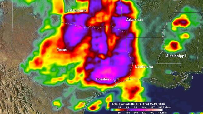 The data was created into an image at NASA's Goddard Space Flight Center in Greenbelt, Maryland and included IMERG rainfall estimates for the period from April 15 at 00:00 UTC (April 14 at 8 p.m. EDT) to April 19 at 08:30 UTC (4:30 a.m. EDT) for eastern Texas and the surrounding region.