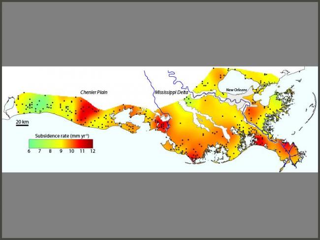 “The novel aspect of this study is that it provides a map that shows subsidence rates as observed at the land surface,” said Torbjörn Törnqvist, professor of geology and chair of the Department of Earth and Environmental Sciences at Tulane University.