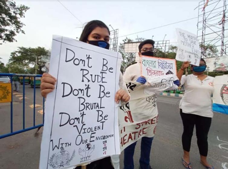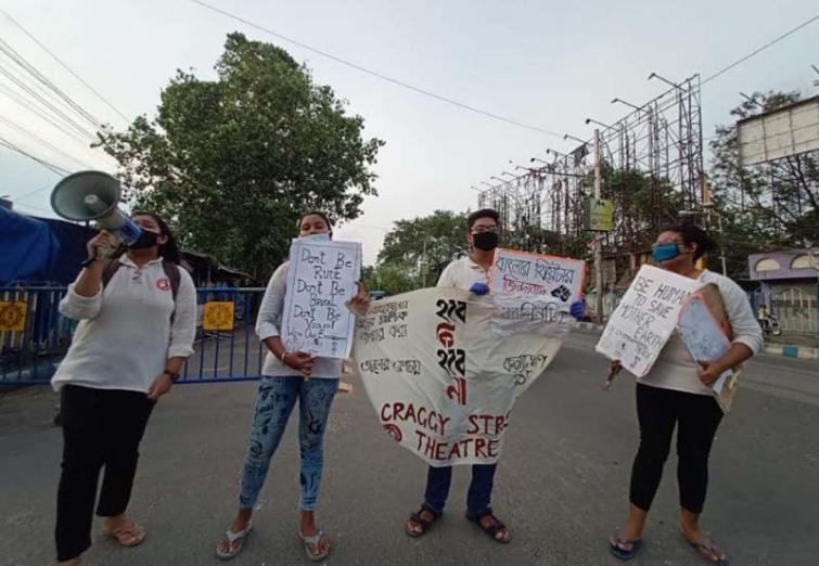 The street demonstration was carried out with a small group, maintaining social distancing and following other protocols pertaining to Covid-19 situation in India.