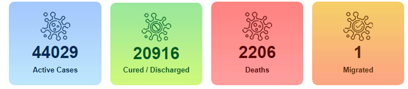 New Delhi/IBNS: Marking the biggest single-day spike of 4213 cases, the total number of COVID-19 cases in India now stands at 67152, as per data released by the Ministry of Health.