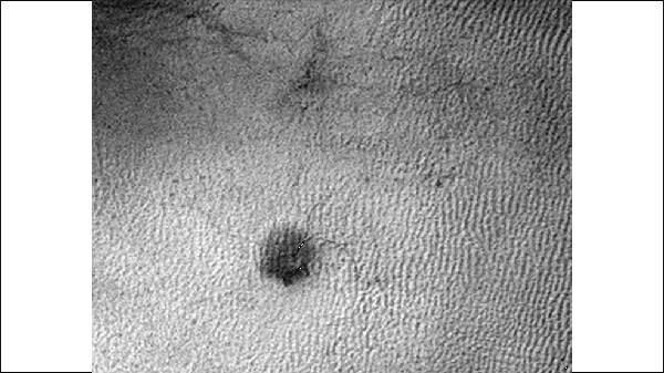 This explanation has been well accepted, but actually seeing a ground-erosion process that could eventually yield the spider shapes proved elusive. Six years ago, researchers using HiRISE reported small furrows appearing on sand dunes near Mars' north pole at sites where eruptions through dry ice had deposited spring fans. However, those furrows in the far north disappear within a year, apparently refilled with sand.