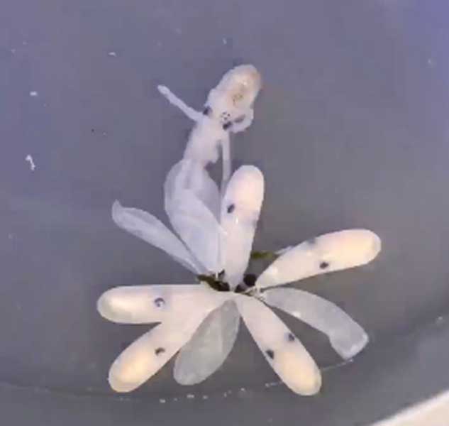 A baby octopus could be seen in the video hatching from its egg and swimming off.