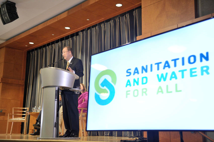(Secretary-General Ban Ki-moon addresses an event entitled, “Sanitation and Water for All", in Washington, DC. UN Photo/Mark Garten.)