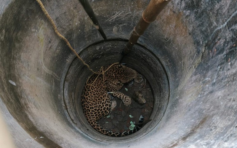 The villagers spotted the leopard inside the dry well when they woke and immediately informed the Forest Department.