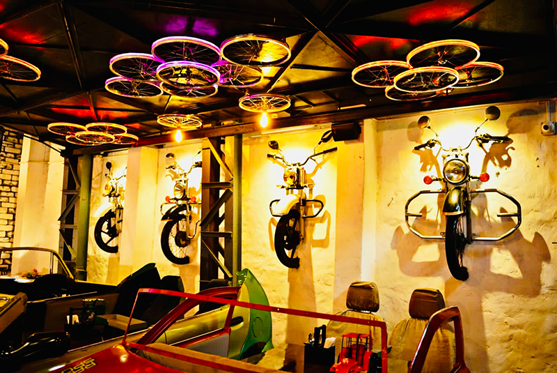 A new entrant in the F&B scene, Car Spa Bistro, located at 20/1B, East Topsia Road, Mirania Gardens, Kolkata, is a 55  seater bistro spread across 2000sq.ft (approximately). The interiors have an interesting look with recycled vehicle parts forming a part of their thematic design.