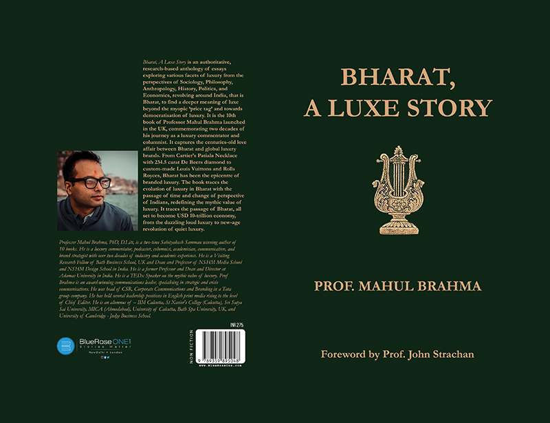 Bharat, A Luxe Story is an authoritative, research-based anthology of essays exploring various facets of luxury from the perspectives of Sociology, Philosophy, Anthropology, History, and Economics, revolving around India, that is Bharat, to find a deeper meaning of luxe beyond the myopic ‘price tag’. It captures the centuries-old love affair between Bharat and global luxury brands. From Cartier’s Patiala Necklace to custom-made Louis Vuittons and Rolls Royces, Bharat has been the epicentre of branded luxury.