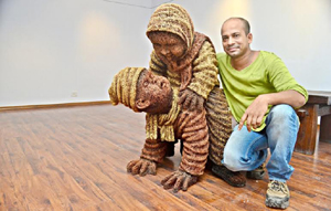 Speaking on his expectations from the exhibition, Mullick said: “I am expecting a lot from the exhibition. My drawings have been appreciated by several painters. I am feeling happy that people can see my drawings through this exhibition.”Through his sculptural works, Nantu Behari Das is expressing the dichotomy between humans and nature.