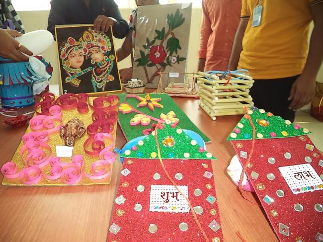 Students from all streams displayed their creativity through beautifully and artistically designed diyas, gift envelopes, photo frames and candles.