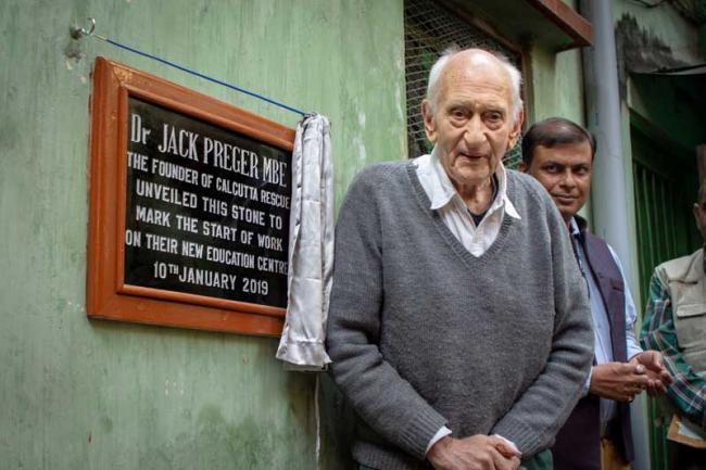 In his final act as Chairperson of Calcutta Rescue, Dr Jack was given the honour of unveiling a foundation stone at the site of the charity’s new education centre in North Kolkata. A fundraising campaign is underway to renovate the old building which, when open, will support around 350 children from nearby slums.