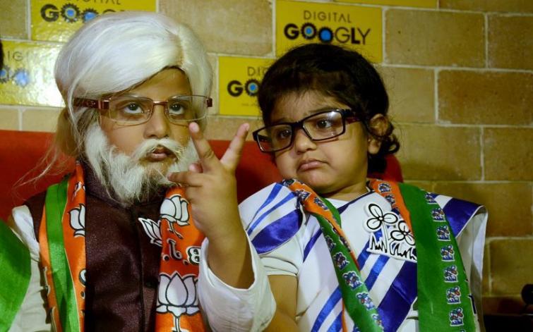 Tiny tots decked up as Prime Minister Narendra Modi, West Bengal Chief Minister Mamata Banerjee and Congress president Rahul Gandhi presented a different kind of colourful election ambience at the launch function.
