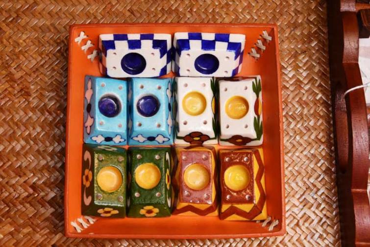 "Or go for the Bengal terracotta pottery items from Bolpur that are very affordable and include beer mugs, Japanese green tea cups, chutney holders and regular coffee mugs," said Menon. "We also have an absolutely new range of different shades of Jaipur Blue pottery in the form of candle holders, coasters, cups and saucers, mugs, kitchen magnets and even ladies bracelets that make for great quick picks as they are good gift options. Also for the fashionably conscious there are very smart jute sling bags, tote bags, jute durries, table mats."