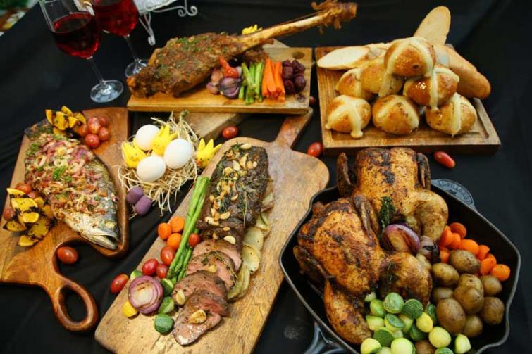 Desserts include ‘Easter Raspberry Lemon Pound Cake’, ‘Traditional Hot Cross Bun’, ‘Easter Pistachio Cake’, ‘Easter Egg baked Chocolate Tart’, ‘Easter Croissant Berry Pudding’, etc.