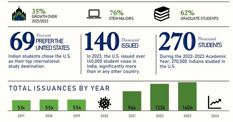 In 2023, the U.S. issued over 140,000 student visas in India, significantly more than in any other country.