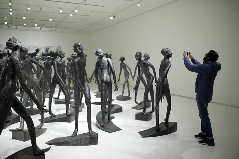 Curated by R. Siva Kumar, the exhibition comprises the installation of fifty life-size bronze figures titled The Crowd and many free-standing bronze sculptures, including his famous The Ramp, which have deep personal meaning for the artist.