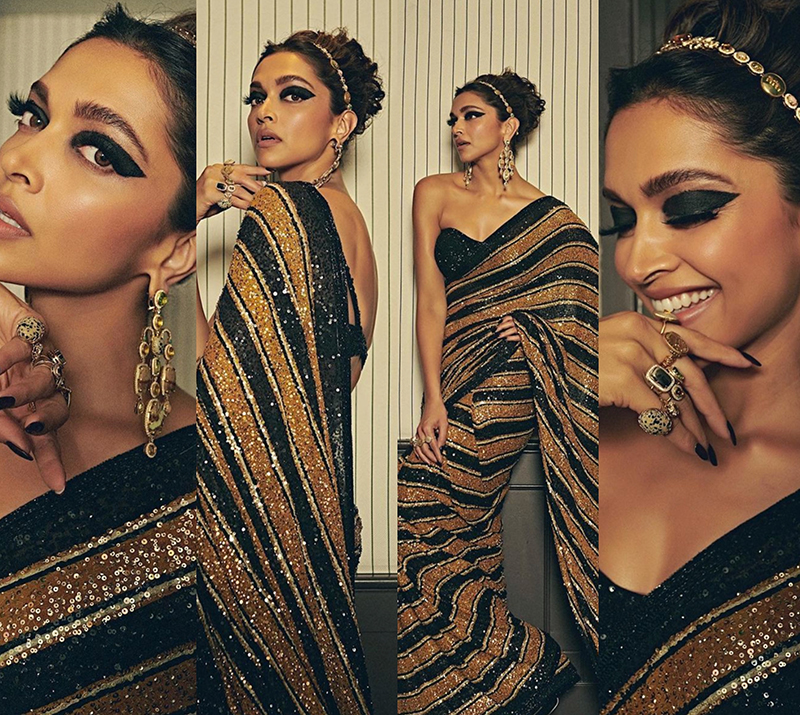 ‘The saree is a retro wear, but the blouse is contemporary with a low neck and a front knot creating an instant appeal’, says a movie buff, who loves replicating the filmi attires by showing them to her tailor.