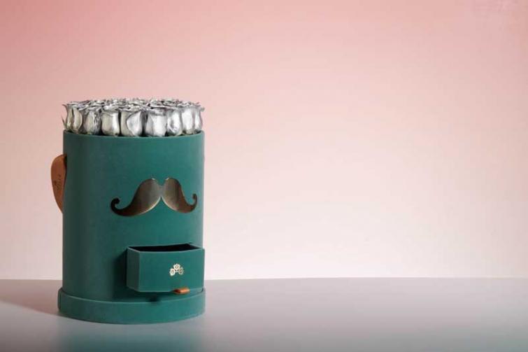 A Teal Suede Box (with Moustache  EP) with roses is pegged at Rs 4,000.