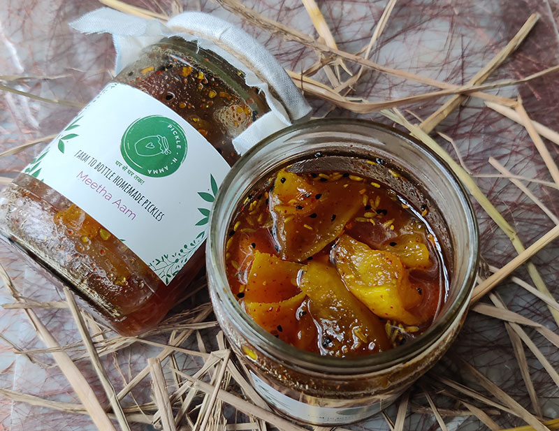 Two of the signature products include Meetha Aam and Mango+Garlic, both made with mangoes grown in her own farm.