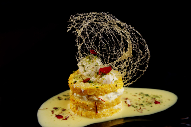 For desserts, you may choose from options like Ras Malai Tres Leches, Carrot Cream, Rose Petal Net; Parle G Cheesecake, Condensed Milk; Chocolate Dirt Pile.