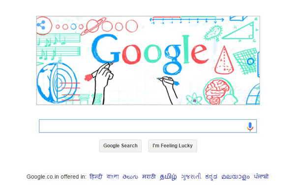 The colourful doodle shows two hands, one representing a student while the other of a teacher,solving an equation together.