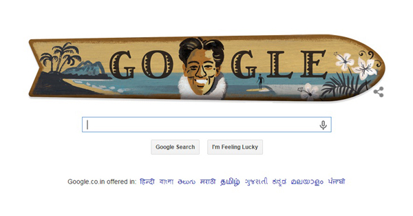 New York, Aug 24 (IBNS) Popular search engine Google on Monday celebrated thr 125th birthday of Hawaiian surfer and Olympic-medal winning swimmer Duke Kahanamoku by decorating its homepage with a colourful doodle.