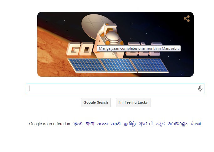 Google doodles to mark Mangalyaan's one month in Mars orbit