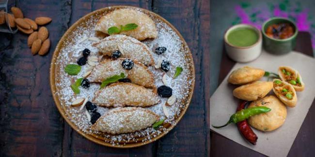 Did you know that Monkey Gujiyas are flaky, sweet dumplings stuffed with cream cheese, almond and cashew nuts, topped with dry cranberry and dusted with cardamom sugar.