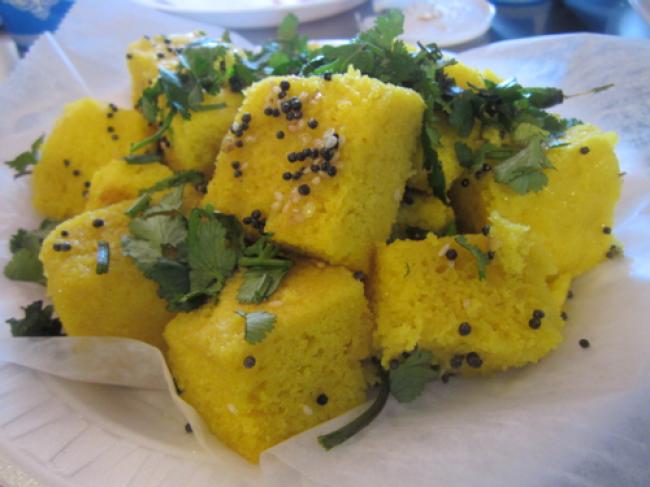7. Dissolve sugar in little water and sprinkle over the dhoklas.