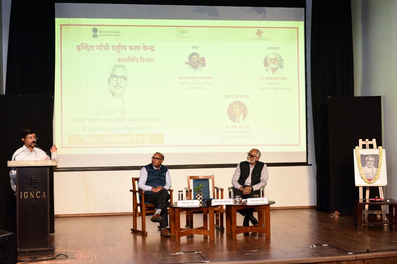 Delivering the Acharya Hazari Prasad Dwivedi Memorial Lecture hosted by the Kalanidhi Division of the Indira Gandhi National Centre for the Arts (IGNCA), New Delhi, Shrivastava spoke about ‘Bhaktikaal Mein Radha’, assessing the various nuances of her existence.