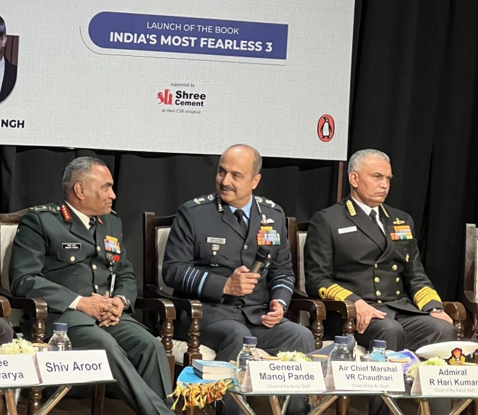 Starting with a quote by the celebrated American general, India's Air Chief Marshal Vivek Ram Chaudhari set the tone for an emotionally charged patriotic evening this winter in the national capital at the launch of 'India's Most Fearless 3 -- New Military Stories of Unimaginable Courage and Sacrifice'. The book is an ode to the valour and supreme sacrifices of the men in uniform.