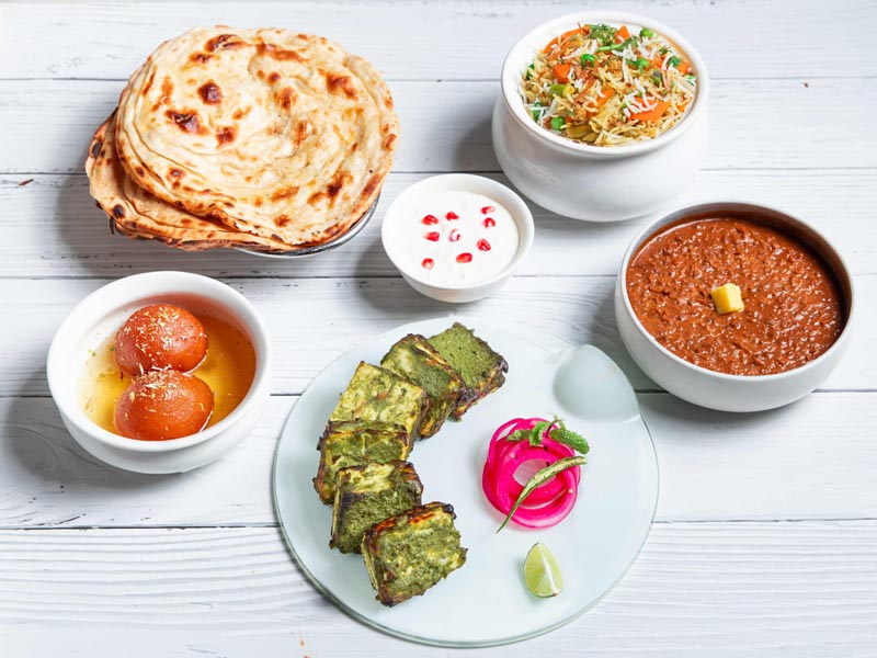 You may round up the meal with desserts such as Tiramisu, Kesari Phirni, Rasmalai, Berry Yogurt Granola, or Tropical Fruit Pastry.