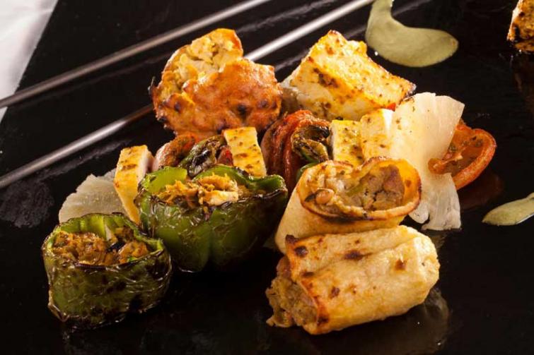 The restaurant offers a wide range of kebabs, with both vegetarian and non vegetarian options.