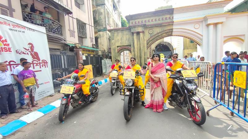 Flagged off at the 66 Pally Durga Puja Pandal, five women bikers will be riding across the length and breadth of Kolkata for five consecutive days.