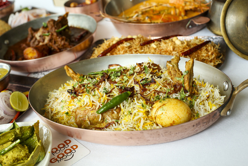 Menu highlights include aloo chaat, phuchka, kebabs, biryani, Asian noodles, etc.
