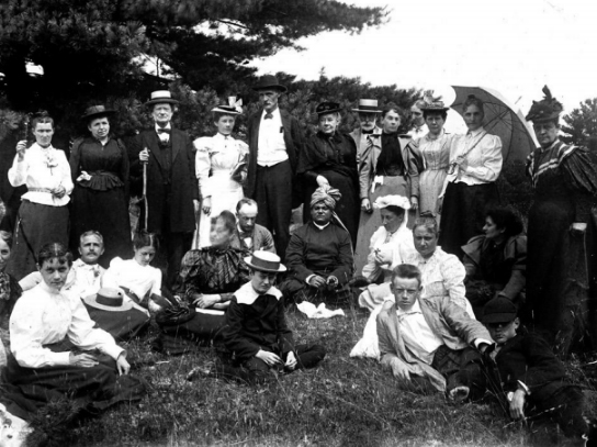 Swami Vivekananda’s famous speech at the World Parliament of Religions in Chicago (1893) where he charmed the audience by addressing them as ‘sisters and brothers of America’ is recalled by a photograph of him surrounded with admirers at Green Acre School, Maine