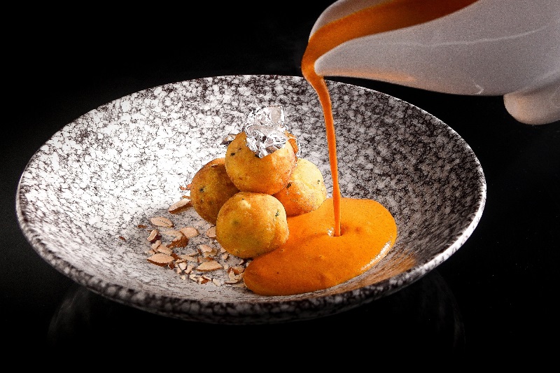 Menu highlights: Braised lamb chops, marsh wangan korma glaze, veri grits; Dal Chawal arancini, achar papad chutney; Butter chicken bun; Chicken tikka masala, Cornish cruncher naan; Almond and water chestnut kofta, methi malai curry, laccha paratha; Rawa kasundi fish, xo jhal moori, ghee pulao; Parle G cheesecake, condensed milk