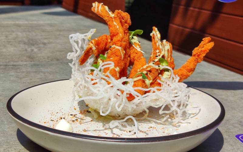 Offering a taste of Mumbai, MVP Koliwada is made with batter fried Bombay style Koliwada prawns, marinated with a hint of spice served in a basket of noodles, topped with horseradish and garlic aioli.