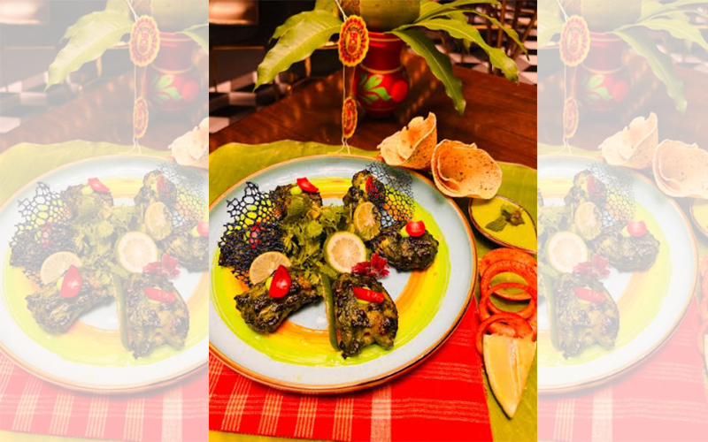 Highlights: The specially curated Nobo Borsho thali at Earthern Tadcka offers “Gondhoraj Shorbat”, followed by scrumptious offerings like “Sona Moong Dal”, “Jhuri Aloo Bhaja”, “Sukto”, “Dhokar Dalna”,”Kochu Chingri”, “Pabda Macher Jhol”, “Kosha Mangsho” accompanied by “Ghee Bhaat & Luchi ”. End your meal on a sweetnote with “ Misti Chutney”, “Misti, “Payesh” or “Mishti Doi”.