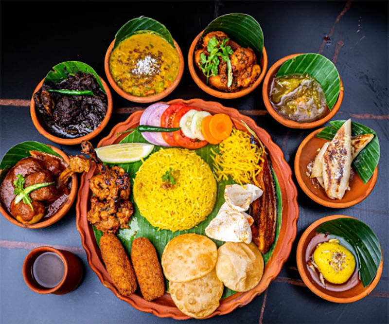 Highlights: Buffet which includes narkel diye mochar chop, Dhakai murgh kebab, luchi-aloodum, chhanar mohima, Murshidabad mutton dum biryani, assorted Indian bread, mishti lal doi (of Nabadwip), mihidana, sitabhog, etc.