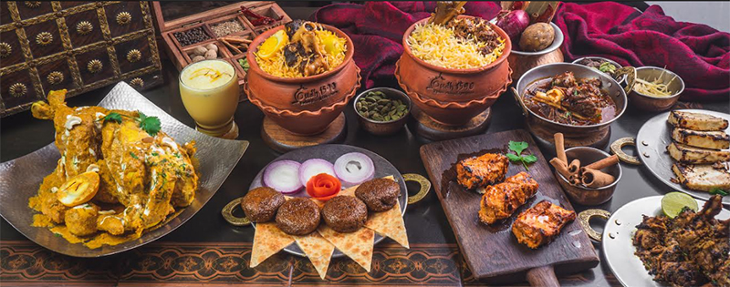 Highlights: An interesting range of non-vegetarian and vegetarian options to choose from – starters (murgh zafrani kabab, gosht galawati kebab, paneer sugandhi kebab, mushroom galawati kebab), main course (Oudh special raan biryani, murgh Awadhi handi biryani, subz soya biryani), salaan (murgh Irani, Awadhi murgh zafrani, keema kaleji, nehari khaas, gosht bhuna and Irani jheenga masala, lasooni palak, awadhi dal), desserts (shahi tukra, phirni); or, go for the chef’s choice, which includes mutton galawati kabab & Lucknowi paratha, Awadhi handi biryani, Awadhi murg zafrani, and shahi tukra