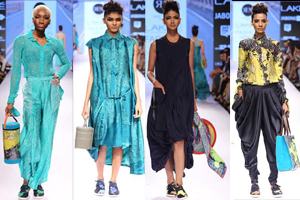 Not to worry. Fashion designers come to your rescue with customised beach-wear and resort-wear too. Kolkata-based Rimi Nayak unveils a unique collection of travel-wear to compliment the searing hot summer and moist monsoon. For example, for monsoons, crop tops are paired up with culottes, draped trousers and skirts.