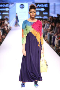 As for the fabric, Nayak uses georgette, crepe, handloom cotton alongwith satin to embellish her long resort-wear dresses, draped jackets, summer tunics, trousers, tops and flared gowns apart from the printed saris, kurtas, flared skirts and crop tops. While designing a range, she keeps in mind the wearability factor to suit global destinations too. “We try to create clothes without any geographical boundaries,” she says.