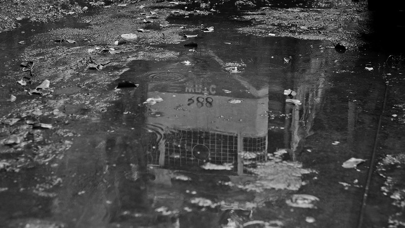 The reflection in a puddle symbolises the grim state of heritage consciousness in Kolkata. Photo by Avishek Mitra