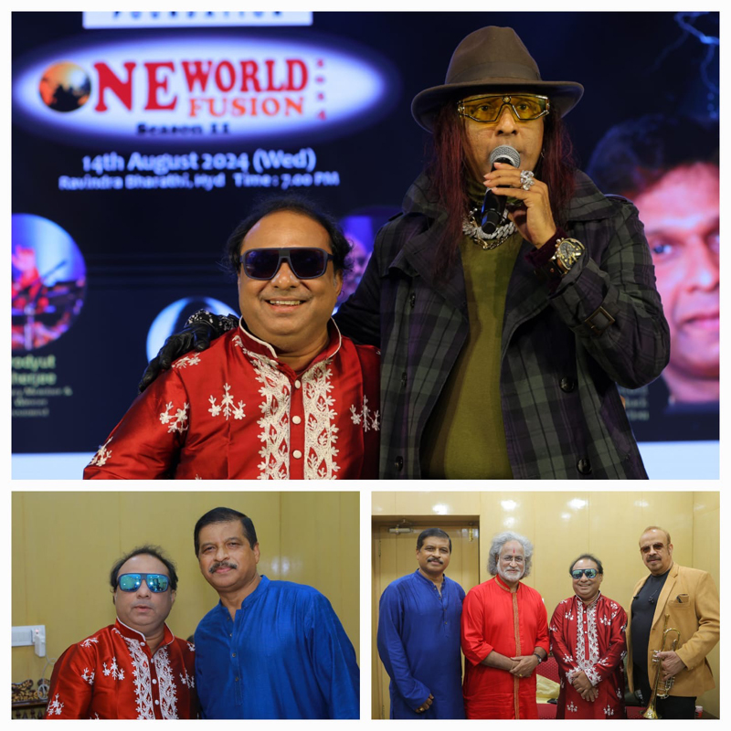 Pandit Vishwa Mohan Bhatt on slide guitar (Mohan Veena) and percussionist Prodyut Mukherjee on tabla along with Bollywood singers had the audience in thrall at the One World Fusion 2024 live concert in Hyderabad recently.