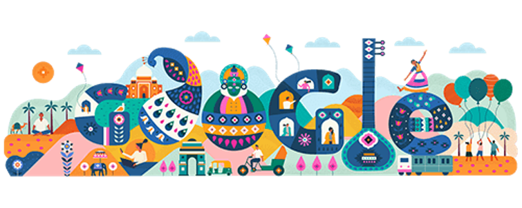 From its world-famous landmarks like the Taj Mahal and India Gate to the wide array of fauna such as its national bird (the Indian peafowl) to classical arts, textiles and dances all coming together to find harmony amongst their differences, is depicted in this doodle.