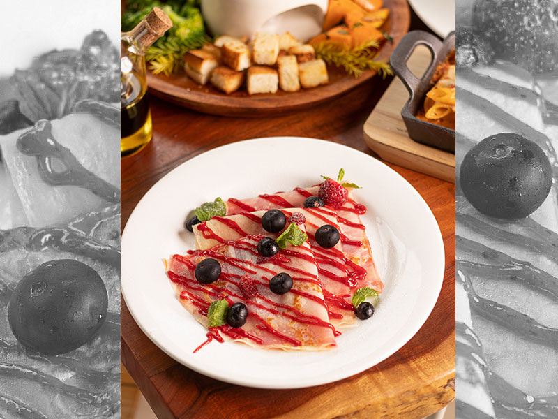 Menu highlights: Slow Cooked Spicy Tangy Pumpkin Soup, Couscous Salad with Exotic Veggies, Chipotle Cheese Fondue, Baked Tangy Feta Pasta, Italian Shakhshuka, kid’s special Christmas Pizza Tree, Crepes with Nutella & Berries, Mint Cheesecake. Classic and inventive beverages.