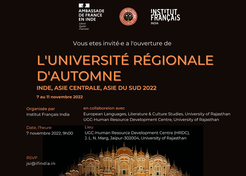 This training programme entitled “Universitérégionaled’automneInde 2022” will be held in collaboration with the University of Rajasthan.