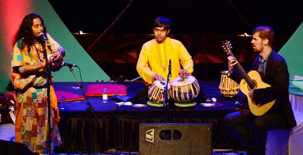 As night set in, the entire area around the lake was lighted up and the lotus- shaped centre stage was set for some delightful music sessions that begian with singer Rashmi Agarwal’s devotional compositions, followed by music in the Indian Baul tradition by Simon Thacker’s Swara Kanti.
