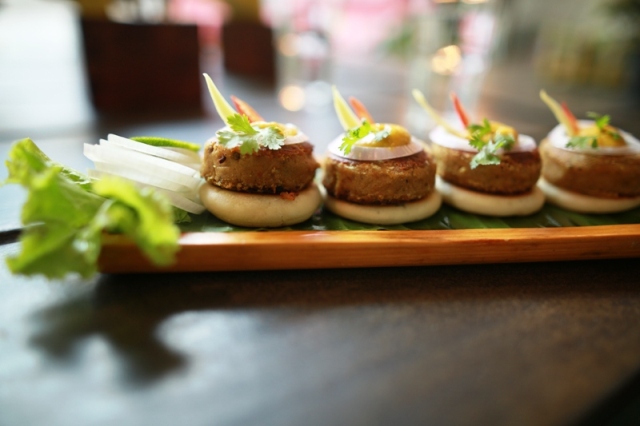 And of course, one should not miss the Mango Cigar Roll! It is a brilliant piece of innovation invitingly presented in a mini glass tumbler. Flaky wonton sheet rolled with spinach, cream cheese, sweet and sour mango are deep fried and served with Alphonso mango and mayonnaise dip.