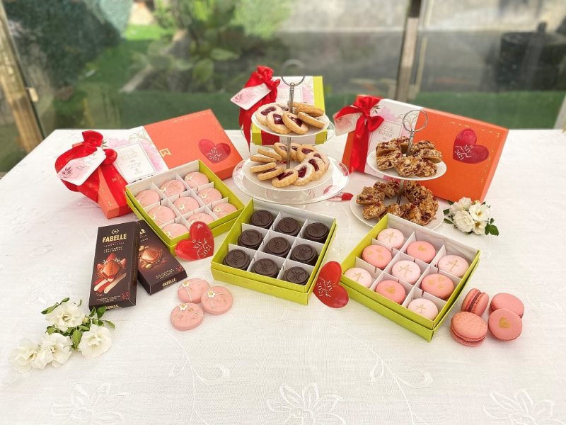 The Hamper Box of Gratitude, pegged at Rs 4,950 plus applicable taxes consists of Macarons (9pcs) in variants of strawberry and ginger, raspberry and lime rind, Rose and Cashew Marzipans (9pcs), Strawberry Linzer Shortbreads (18pcs), Almond and Cranberry Florentines (18pcs), Lavender and Dark Chocolate Tarts (9pcs) and Fabelle Luxury Chocolate Bars (2 bars).