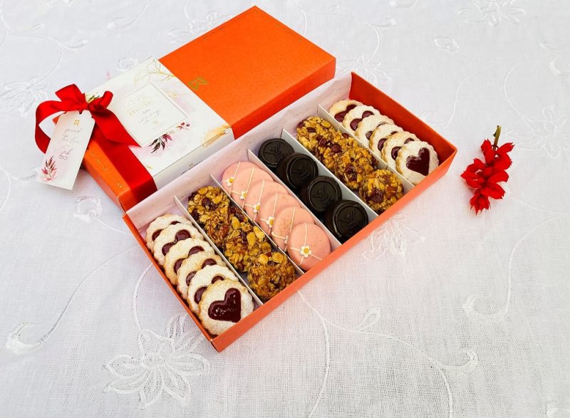 The Box of Appreciation priced at Rs 2,200 (plus applicable taxes includes Rose and Cashew Marzipans (6 pieces), Strawberry Linzer Shortbreads (12pieces), Almond and Cranberry Florentines (8pieces), Lavender and Dark Chocolate Tarts ( 4 pieces).